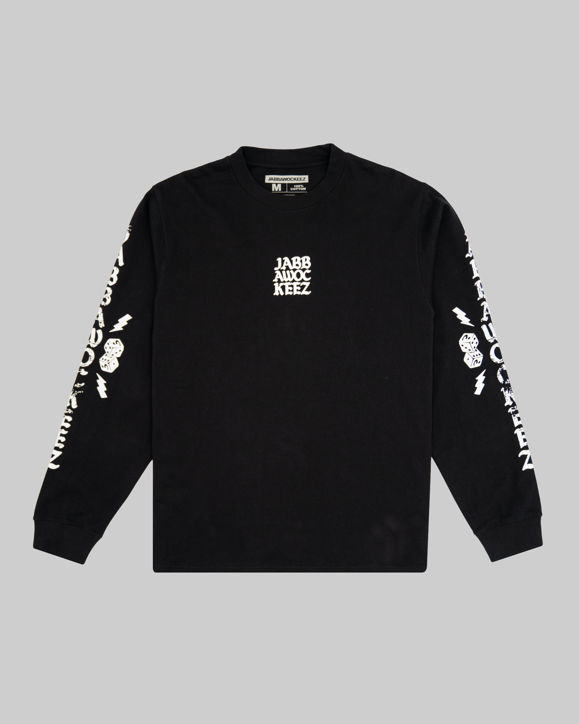 The 1981 Longsleeve Wine offers a durable and comfortable fit with its 100% heavy-weight cotton construction. Expertly screen-printed with mint green designs, it features the iconic 3 stack logo on the front, the 1981 logo on the back, and “Jabbawockeez” along the sleeve, highlighted by lightning bolts and dice accents. This piece combines premium materials and detailed graphics for a refined, authentic streetwear statement.