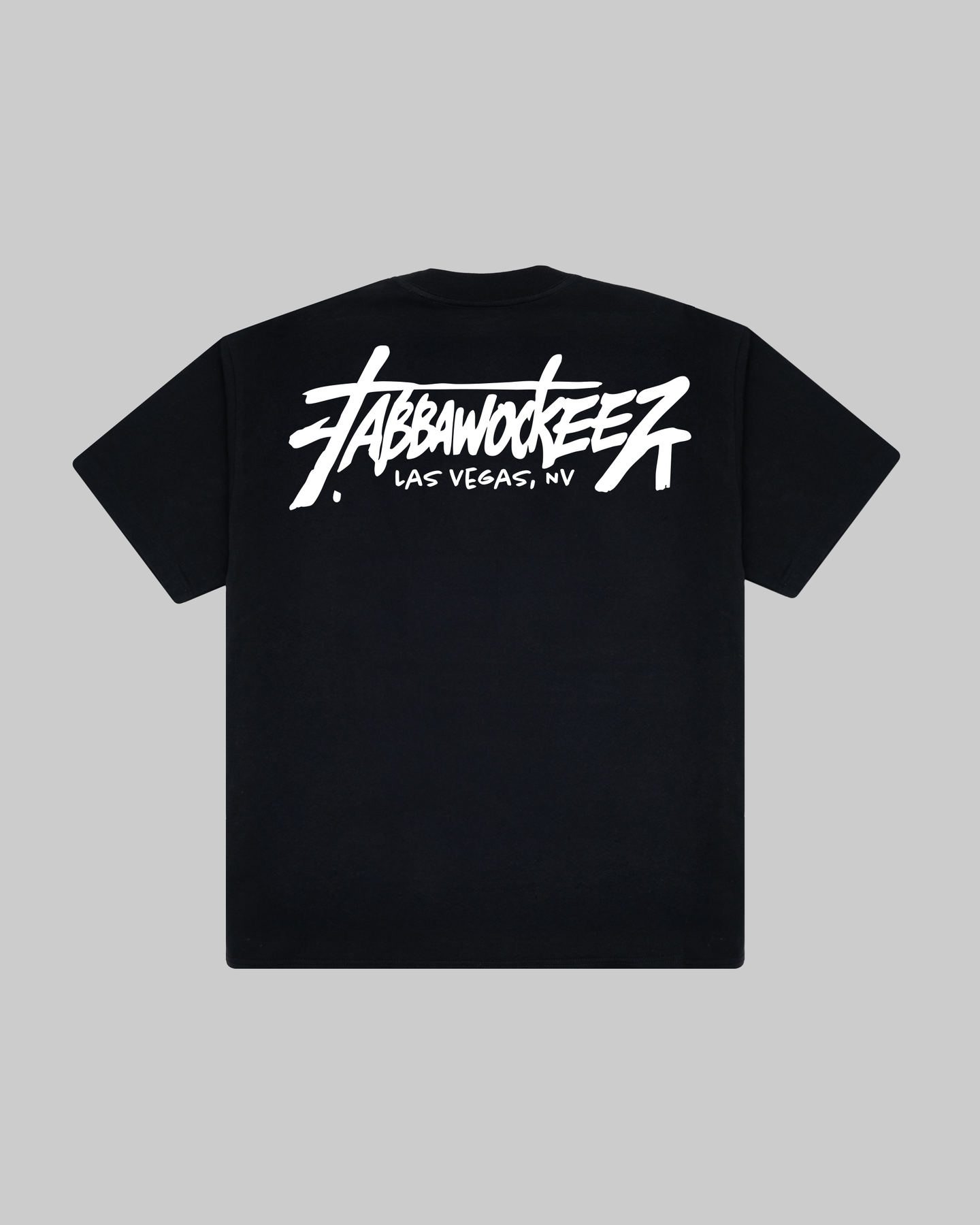 This Script Tee in black is crafted from 100% cotton for breathable comfort and durability. Featuring a white screen-printed "jabbawockeez" logo discreetly placed near the left rib area, it offers a subtle yet stylish nod to Las Vegas, NV.